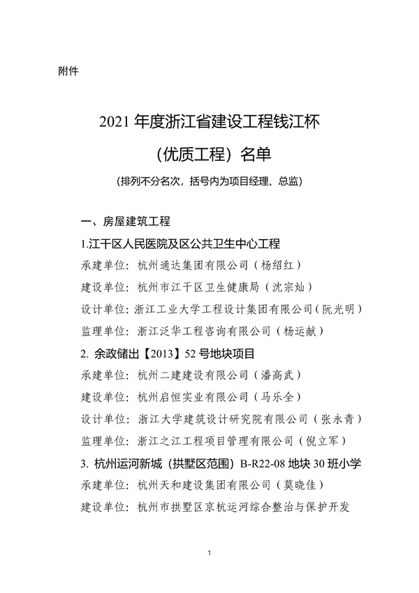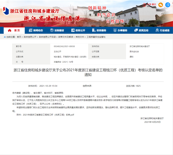 根據(jù)《浙江省住房和城鄉(xiāng)建設(shè)廳關(guān)于公布2021年度浙江省建設(shè)工程錢江杯(優(yōu)質(zhì)工程)考核認(rèn)定名單的通知》,我公司承建的景寧畬族自治縣鳳凰學(xué)校新建工程、麗水二中校園完整工程2個(gè)項(xiàng)目榮獲2021年度浙江省建設(shè)工程錢江杯(優(yōu)質(zhì)工程)。錢江杯(優(yōu)質(zhì)工程)是浙江省工程建設(shè)領(lǐng)域的最高質(zhì)量獎(jiǎng)項(xiàng),代表了浙江省建筑業(yè)工程質(zhì)量的最高水平。