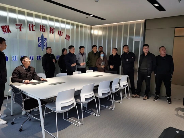 鐘局一行首先來到中立數(shù)字化指揮中心,詳細(xì)聽取“智慧工地”系統(tǒng)的運(yùn)用情況,并指出信息化控制系統(tǒng)要做到好用、實(shí)用,為企業(yè)管理提高工作效率。