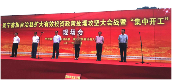2016年5月25日下午,景寧畬族自治縣擴(kuò)大有效投資政策處理攻堅(jiān)大會(huì)戰(zhàn)暨“集中開工”現(xiàn)場會(huì),在我公司中標(biāo)承建的景寧縣中心糧庫遷建工程現(xiàn)場舉行。景寧縣政府領(lǐng)導(dǎo),職能部門、工程所在地鄉(xiāng)鎮(zhèn)領(lǐng)導(dǎo),建設(shè)、施工和監(jiān)理單位代表,參加了本次現(xiàn)場會(huì)。景寧縣中心糧庫遷建工程作為集中開工的主要工程項(xiàng)目,我公司副總經(jīng)理譚俊勇代表我公司作施工單位表態(tài)發(fā)言。