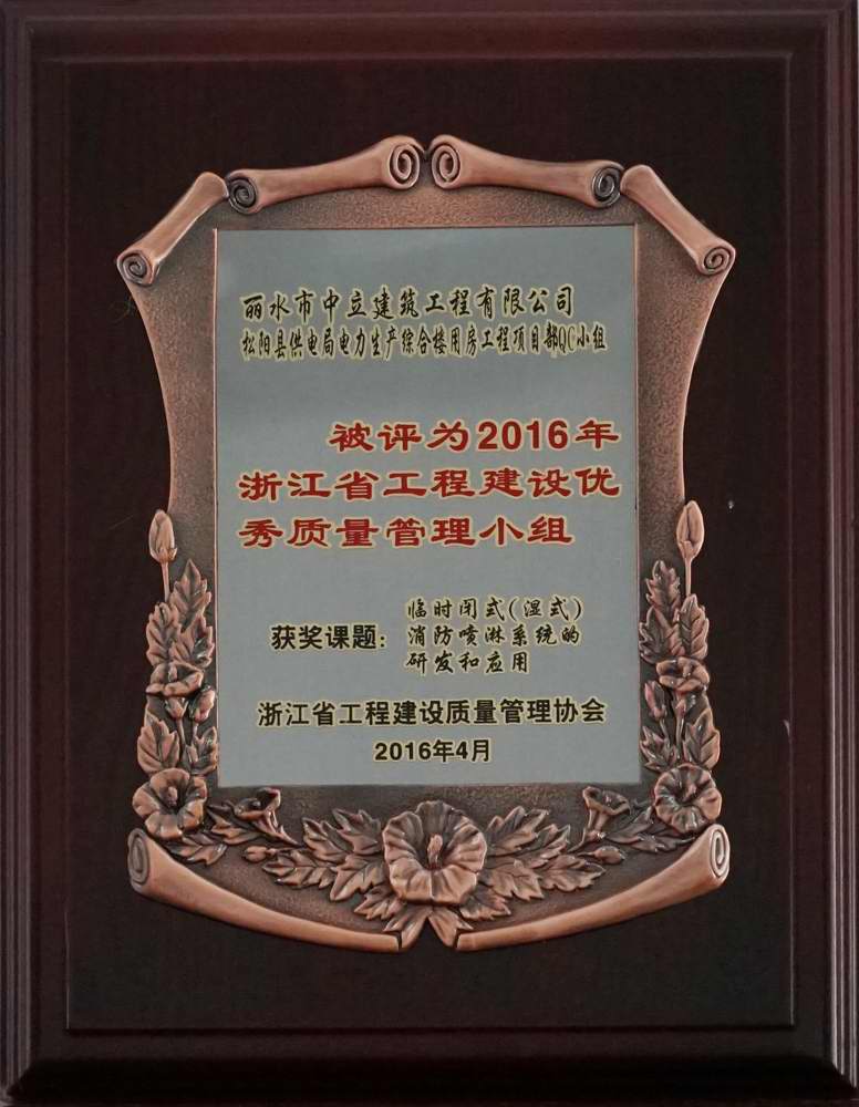 浙江省工程建設(shè)質(zhì)量管理協(xié)會于2016年4月27日至29日在杭州之江飯店舉行2016年度浙江省工程建設(shè)優(yōu)秀QC成果發(fā)布會。我公司松陽縣供電局電力生產(chǎn)綜合樓用房工程項目部QC小組的活動成果“臨時閉式(濕式)消防噴淋系統(tǒng)的研發(fā)和應(yīng)用”參與交流,小組被評為2016年浙江省工程建設(shè)優(yōu)秀質(zhì)量管理小組。該成果有效地解決了高層建筑施工階段火災(zāi)控制的安全保障問題,具有施工方便、安全可靠等優(yōu)點,且該系統(tǒng)可周轉(zhuǎn)多次重復(fù)利用,節(jié)約了工程造價成本,值得推廣到其它高層建筑施工項目部。