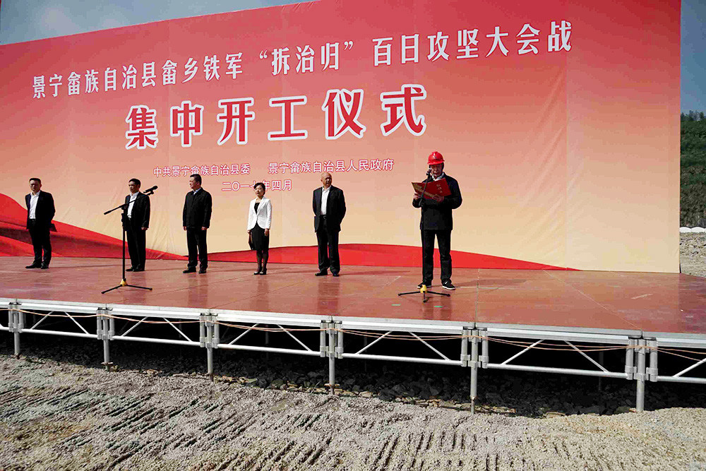 4月24日上午,景寧畬族自治縣畬鄉(xiāng)鐵軍“拆治歸”百日攻堅(jiān)大會(huì)戰(zhàn)集中開(kāi)工儀式在鳳凰學(xué)校舉行,縣委書(shū)記、縣長(zhǎng)等領(lǐng)導(dǎo)出席儀式,中立公司代表40多個(gè)施工項(xiàng)目單位作表態(tài)發(fā)言。