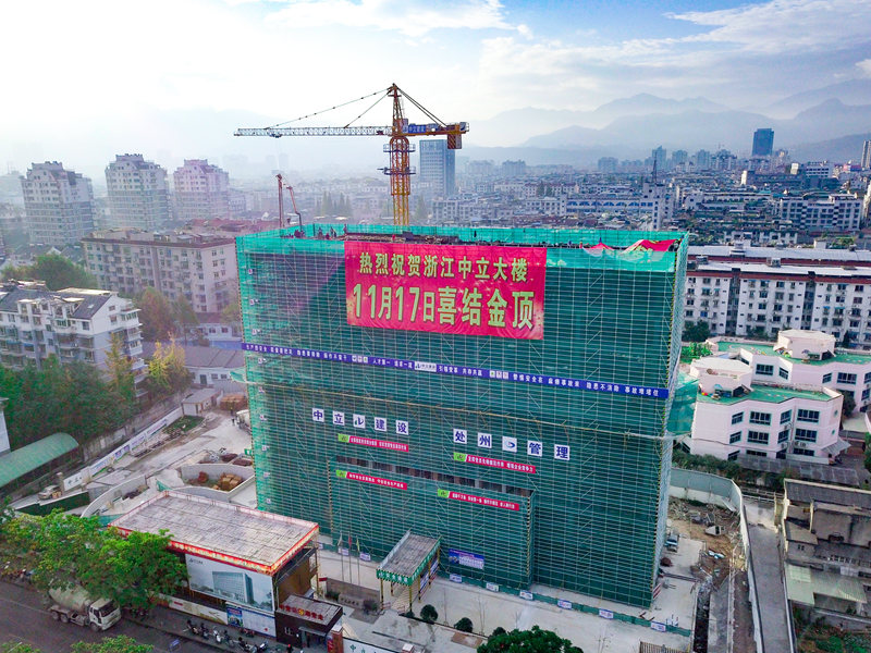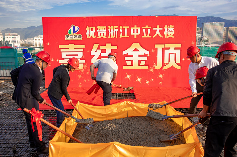 11月17日上午,秋高氣爽、風和日麗,在一派喜慶熱烈的氛圍中,浙江中立建設有限公司自主建設的中立大樓喜結金頂。