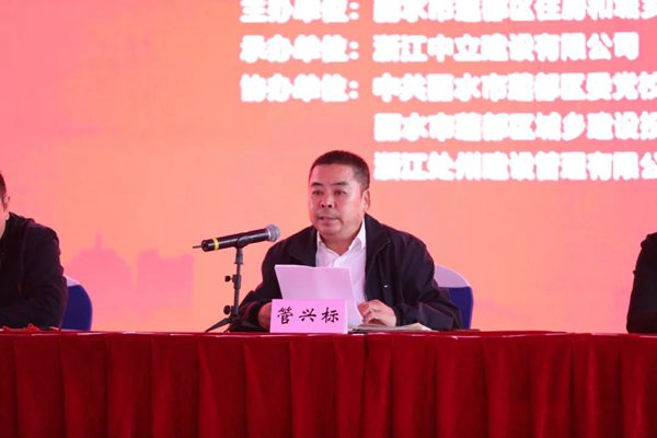 蓮都區(qū)副區(qū)長管興標(biāo)、蓮都區(qū)建設(shè)局副局長吳大勇、蓮都區(qū)委黨校常務(wù)副校長陸朝霞、區(qū)建投公司副經(jīng)理劉良、浙江中立建設(shè)有限公司董事長周健、浙江處州監(jiān)理總經(jīng)理王建武主席臺就座,蓮都區(qū)建筑施工、監(jiān)理企業(yè)代表及相關(guān)主管部門代表參加觀摩會。